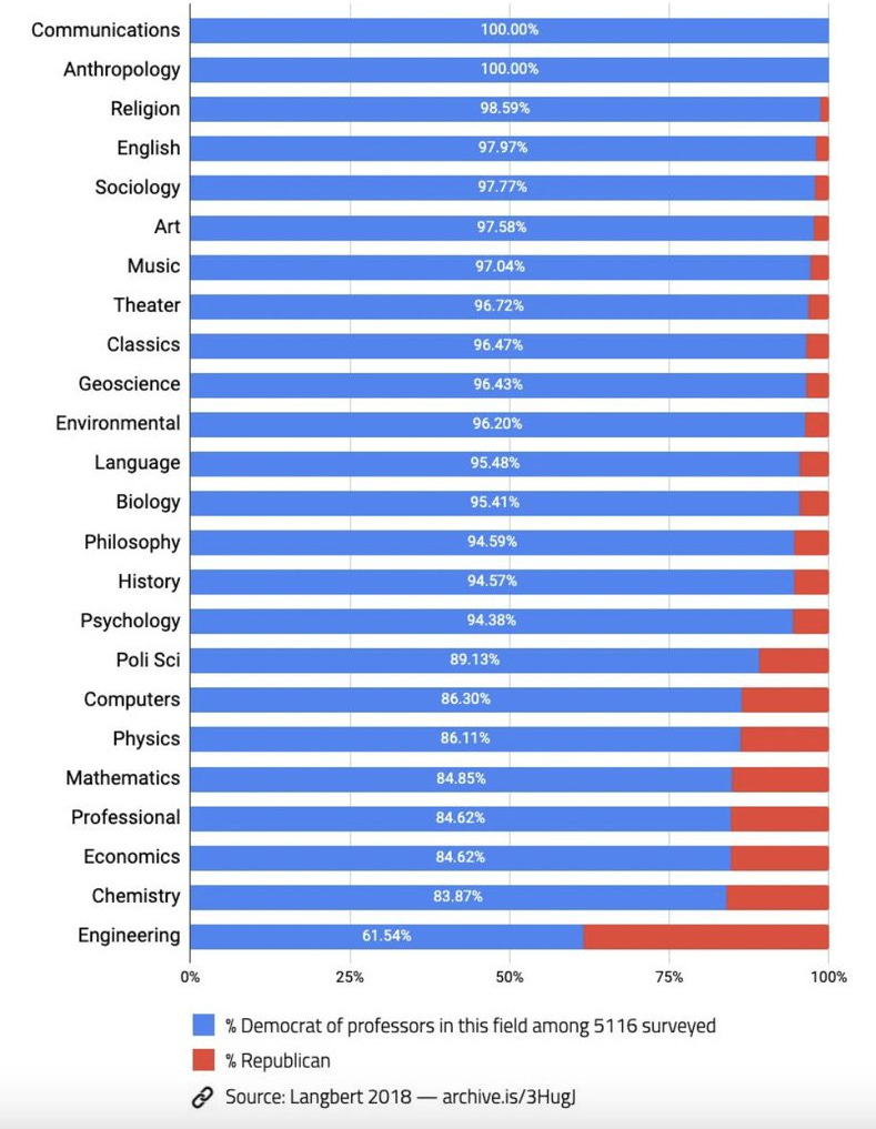 That contradiction of free speech in theory, repression in practice is not an accident. It reflects what students are actually taught by many professors. For years now, the campus has served as the incubator for a new civic religion. Its sacred texts are grievance studies and its catechism is the oppressor–oppressed binary derived from Marxist thought. Students learn not that debate is a process by which we approach truth, but that certain views are so intrinsically harmful that they must be suppressed. And when you see opponents not as fellow citizens in error but as heretics, you don’t reason with them, you try to silence them. The survey’s finding that more than half of students say they’ve felt intimidated expressing ideas different from a professor’s is what you’d expect in such a climate. Doesn’t sound very liberal to me.