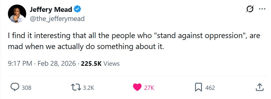 This ideology doesn’t stay contained to foreign policy. It shapes everything domestic too. It’s why a city can watch someone get pushed onto subway tracks, shrug, and spend more energy debating the attacker’s mental health needs than the safety of everyone on the platform. The victim hierarchy means the perpetrator outranks the victim, and policy should follow. Don’t punish harshly. Don’t enforce. Don’t judge. The result is a permanent underclass of actual victims whose suffering doesn’t fit the narrative, so it simply doesn’t get processed. If you’re actually paying attention to base reality, it’s clear we are all far more subservient to the bottom 10% (including violent criminals) than we are to the continually vilified top 1%.